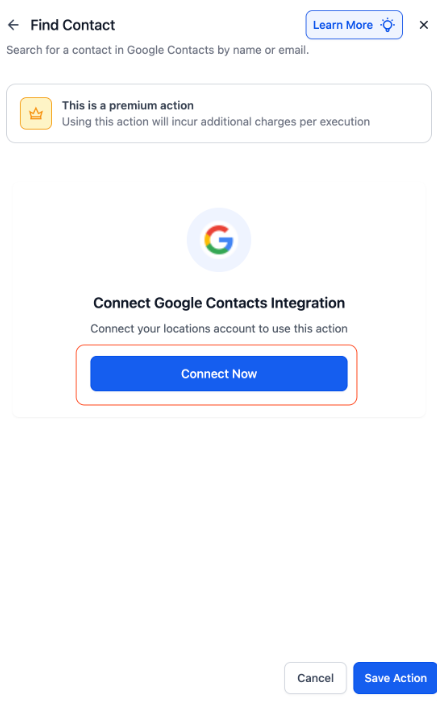 Section titled “1. Access Workflow Builder”Open your ’s workflow builder and search for “Google Contacts” to find triggers and actions related to contacts and groups.
