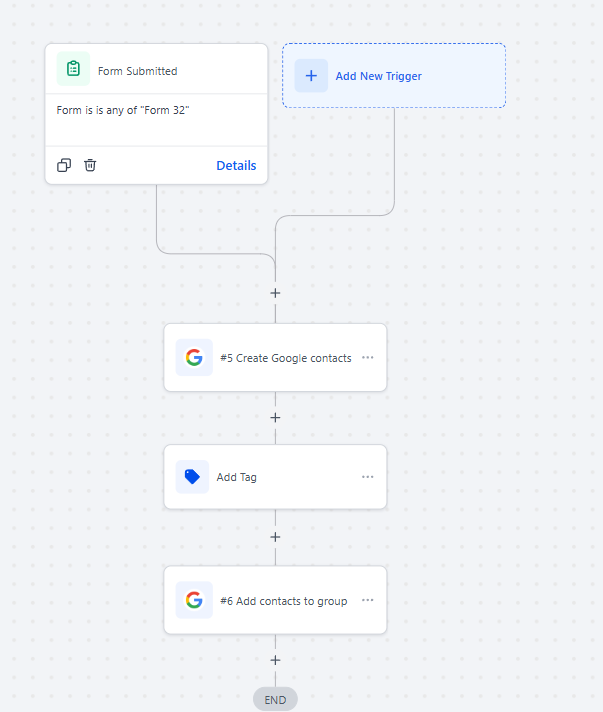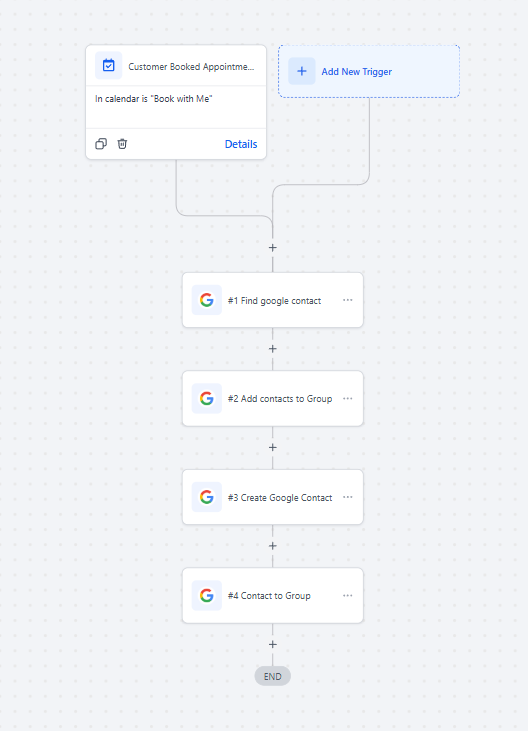 Section titled “Workflow Triggers and Actions”- Initiate workflows based on new contacts or groups created in Google Contacts.