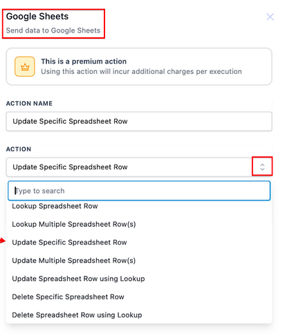 Premium Triggers and Actions - Google Sheets - Update Specific Spreadsheet Row