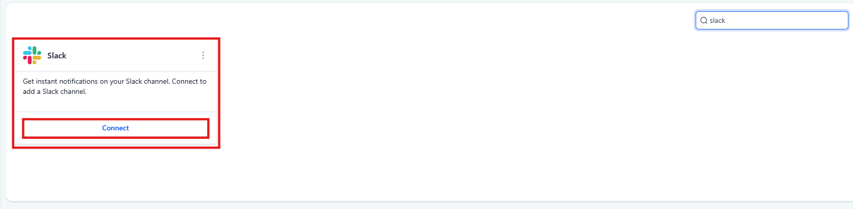 Section titled “Prerequisites before using Workflow Premium Slack Action”- The account needs to have an active Slack account integrated before a slack action usage. Head over to the account settings page > integration and pick slack.