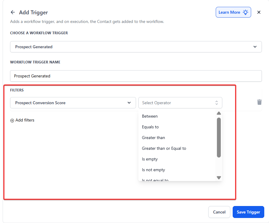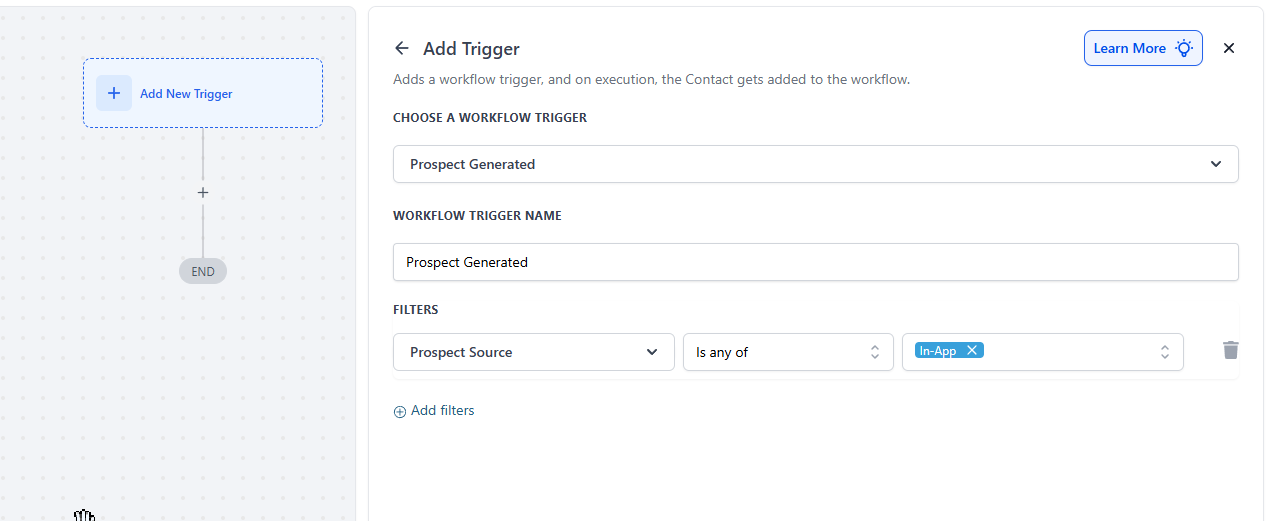 Section titled “How to Use the “Prospect Generated” Workflow Trigger”Step-by-Step Instructions