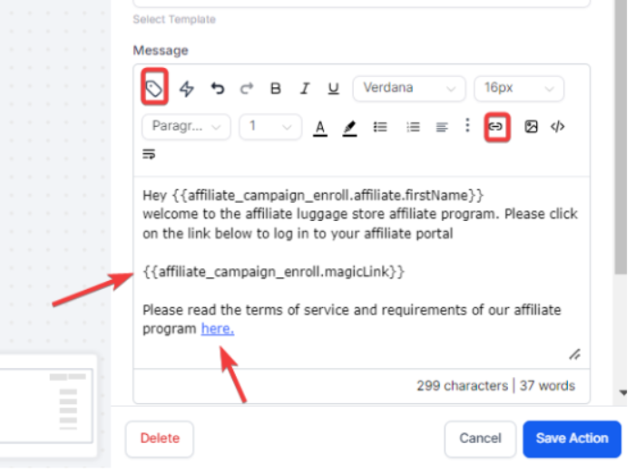 2- In the message, welcome the affiliate to the program and provide them with key information, such as their Magic Login Link or Portal Access Link.