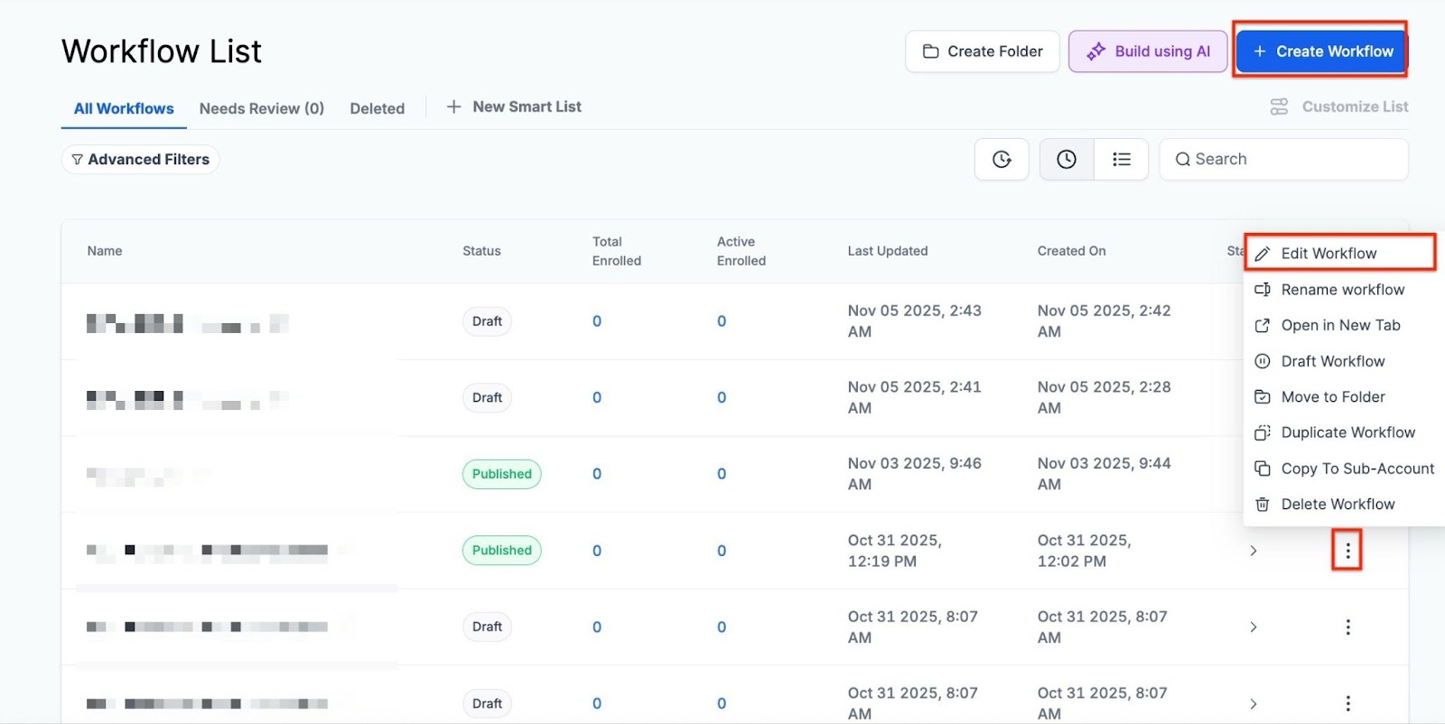 - Start a Workflow: Begin by creating a new workflow or editing an existing one.