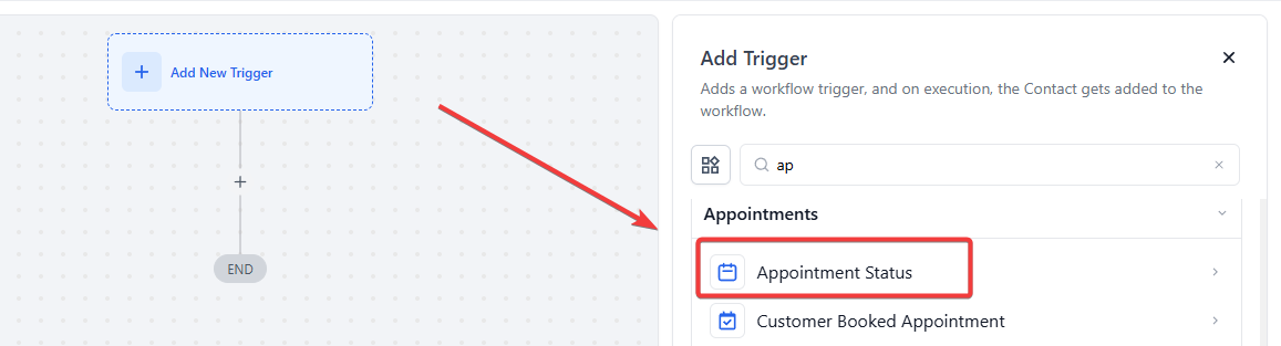 - Select Appointment Status in the Appointments section of the Workflow Triggers Menu or use the search feature