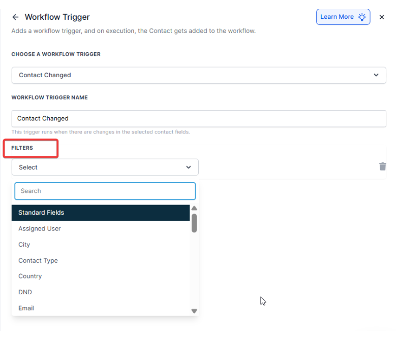 **Question:Can I use multiple filters with the “Contact Changed” trigger? ** Answer: Yes, you can apply multiple filters to refine when the workflow should trigger. For example, you might set filters for both tag additions and custom field updates to trigger different actions.