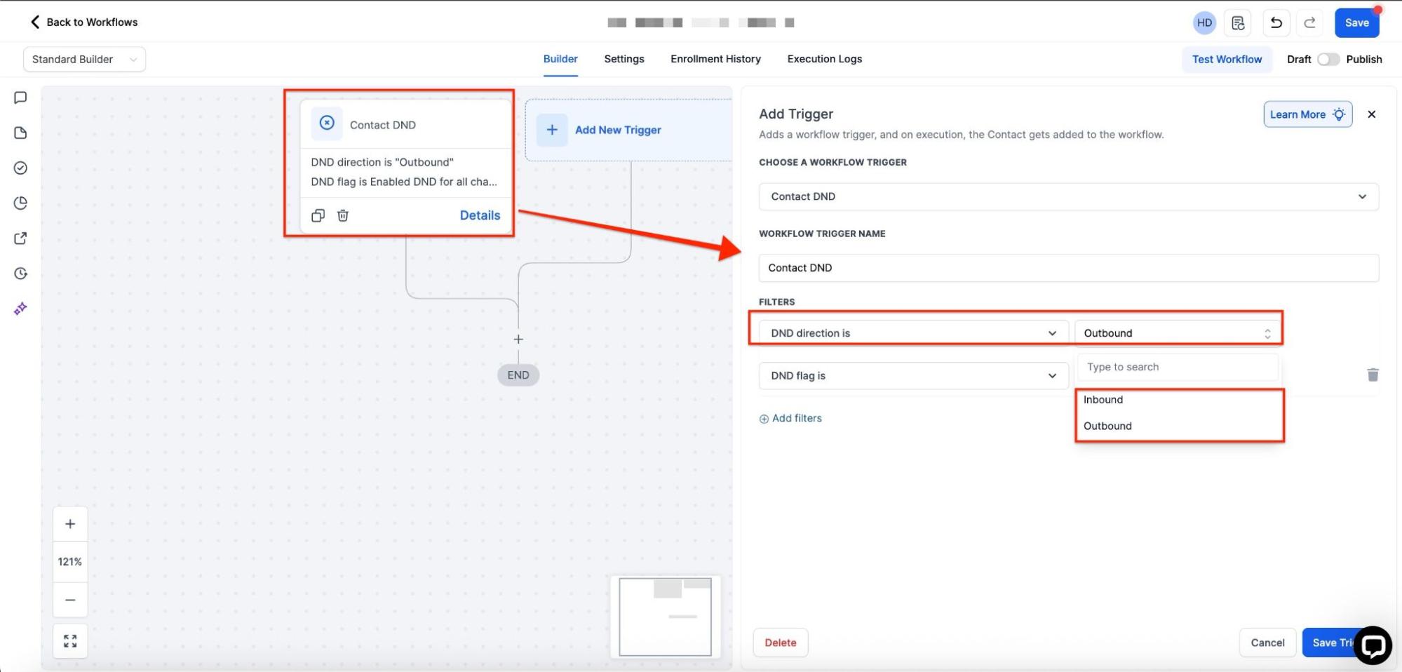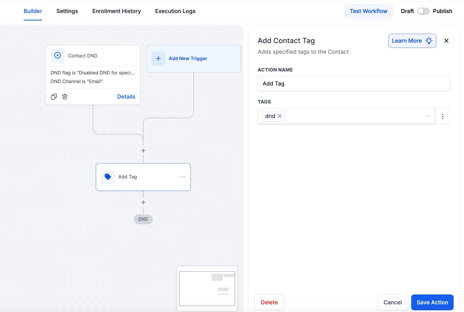Now, your workflow is set up and ready to go with the Contact DND Workflow Trigger.