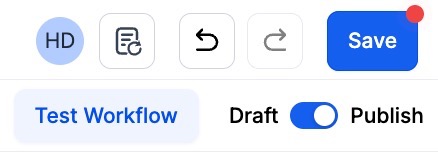 Be sure to test your Workflow to make sure it is set up correctly using the Test Workflow button next to the Publish toggle switch.