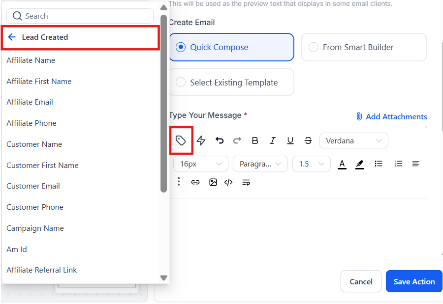 - Instant Affiliate Engagement: The “Lead Created” trigger automatically launches workflows when an affiliate generates a lead, ensuring immediate communication.