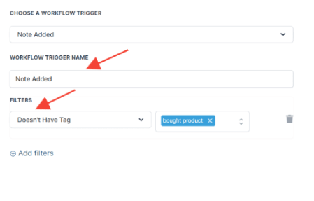 - Press + Add filters to open up the Filters section of the Trigger setup menu