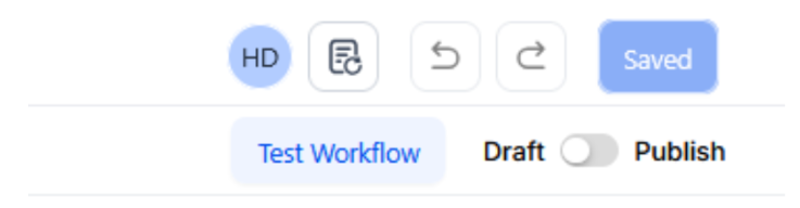 Section titled “Step 4: Press Save in the top right corner of your browser to save the workflow”- If your Workflow is ready to be enabled, make sure the toggle switch under Save is set to Publish