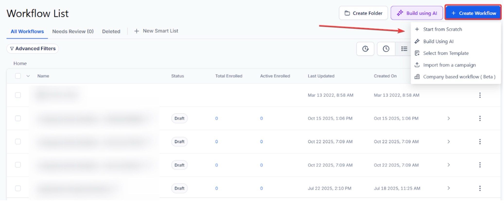 Section titled “How to Use:”- Navigate to Automation > Workflows. Click on + Create Workflow