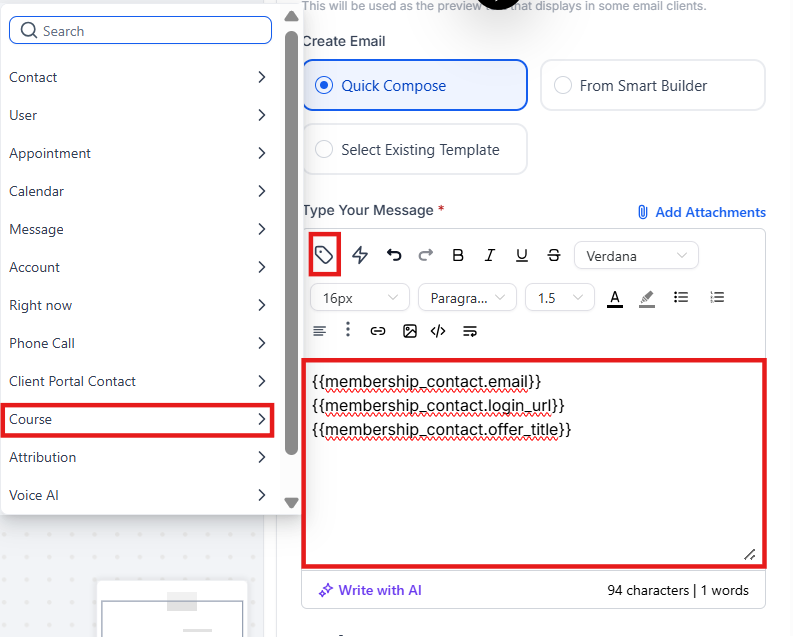 - If you use the Offer Access Granted Trigger, keep in mind credentials will not be sent for a workflow credential email (This will send credentials the first time an offer is granted when using the default email template in Membership > Courses > Settings> Email Settings). Credentials will only populate the first time an offer is granted when using the New Signup trigger with workflows.