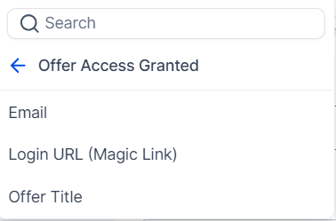 - For offer access granted , you would only be able to provide the Email, Login URL, and Offer Title custom values.