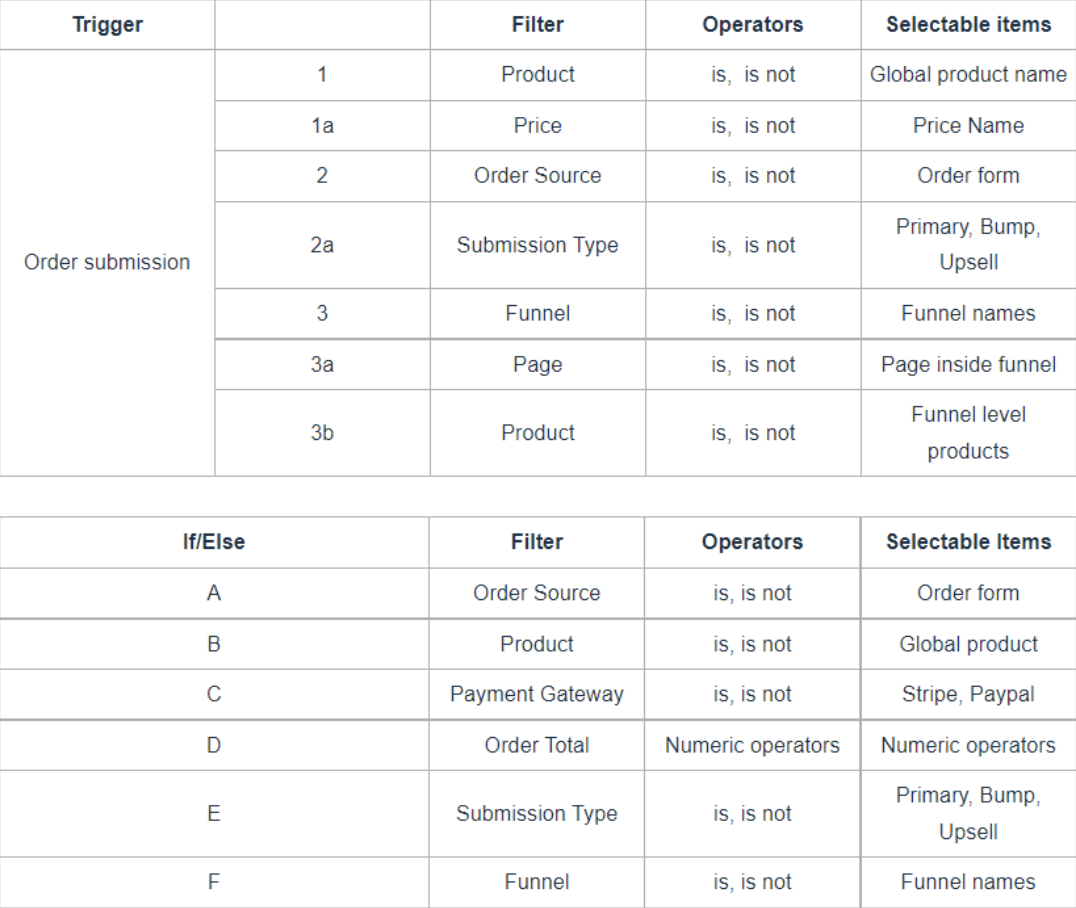 - Product/Price-Based Filtering: The Order Submitted trigger allows filtering based on global product/price details, a feature not available in the Order Form Submitted trigger.