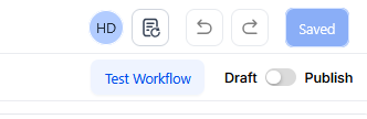 Question: How do I enable the workflow after setting it up? Answer: To enable the workflow, ensure the toggle switch under Save is set to Publish. This activates the workflow, allowing it to run when the trigger conditions are met.