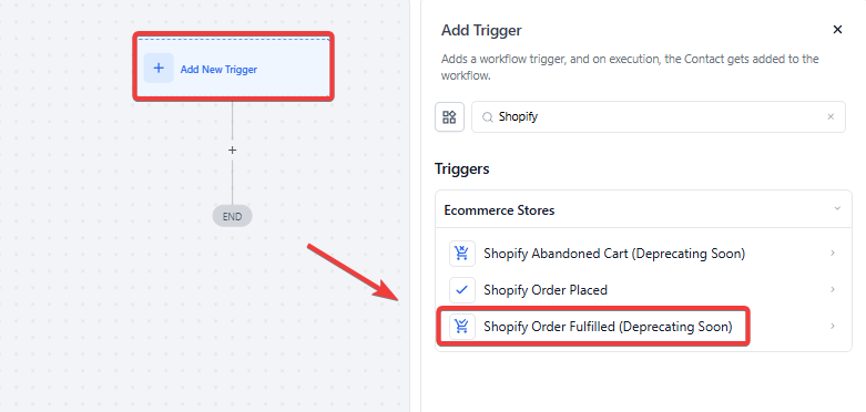 - Select the “Order Fulfilled” trigger