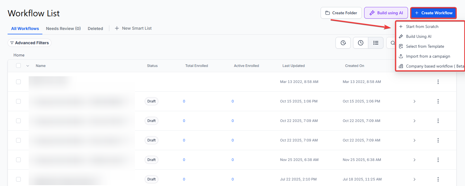 Step 1: Navigate to Automation on the left > Workflows on the top, and create a new workflow and Start from Scratch