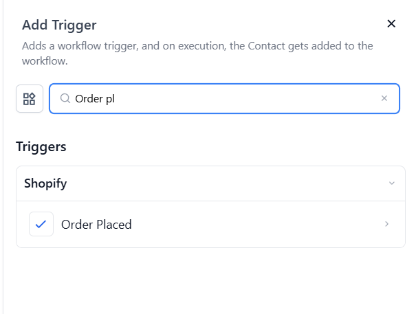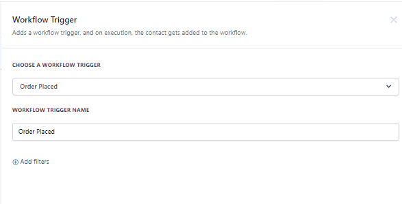 Question: How do I access and use the “Order Placed” trigger? Answer: Start by adding a new workflow or editing an existing one. Click “Add New Workflow Trigger,” select “Order Placed” from the trigger options, and then configure it according to your needs.