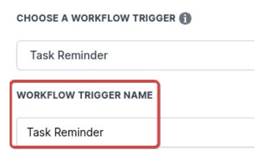 Please Note: You can change the workflow builder display name using the textbox below the Workflow Trigger Name. This will only affect the display name within the workflow builder and has no other impact on the content or functionality of this Workflow Trigger.