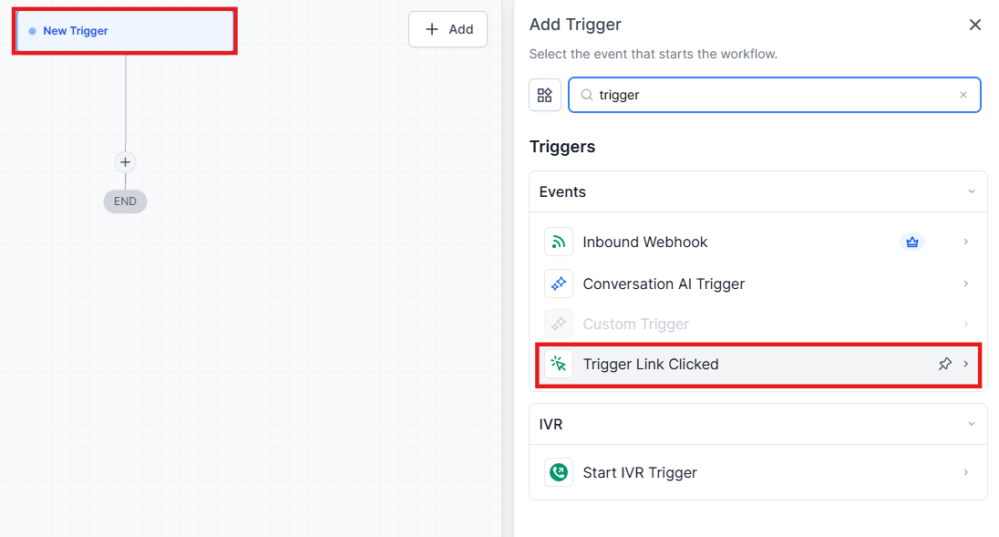 Question: How do I start creating a Trigger Link workflow? Answer: Begin by starting a new workflow or editing an existing one in the Workflow builder. Click “Add New Workflow Trigger” and select “Trigger Link Clicked” from the Contact Actions section of the Workflow Triggers Menu.