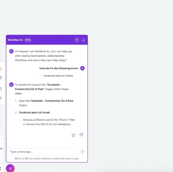 How to Use the AI for Error ResolutionWhen you are creating a workflow or editing the existing one: