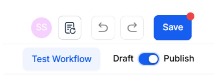 Section titled “Step 5: Save, Test, and Publish Your Workflow”- Save your workflow with the blue Save button.
