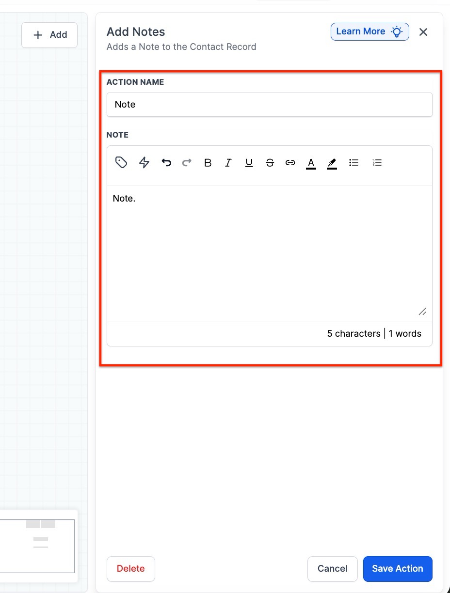 Section titled “Step 4: Setting Up Your Workflow Actions”- Add new actions using the ”+” icon.