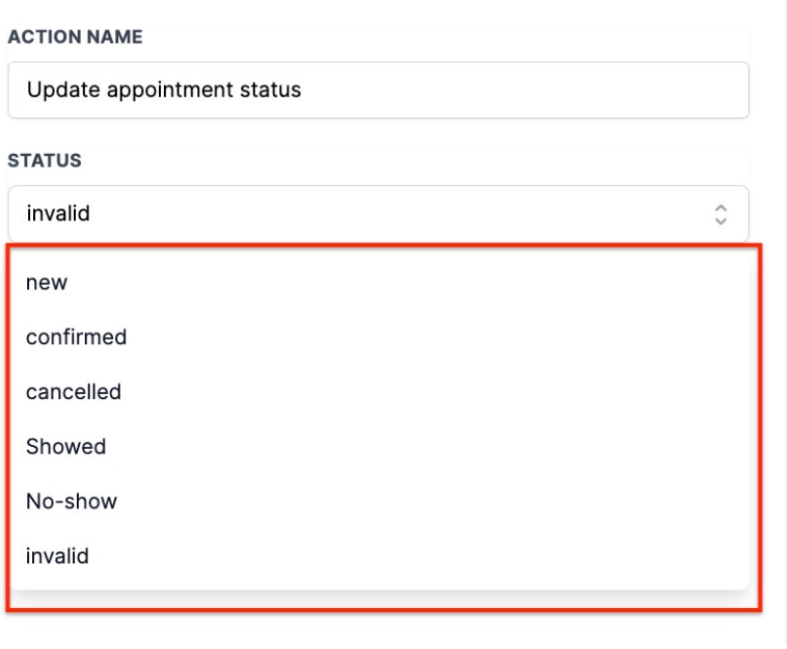 Question: Can I use this workflow to update appointment statuses to other statuses besides “Invalid”? Answer: Yes, you can customize the workflow to update appointment statuses to any available status by selecting the desired status in the “Update Appointment Status” action.