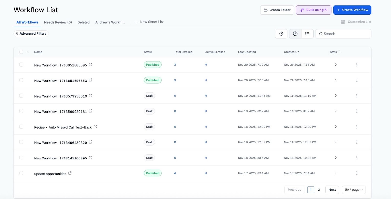 Section titled “Step 1: Access your Workflow”- Navigate to Automation > Workflows in .