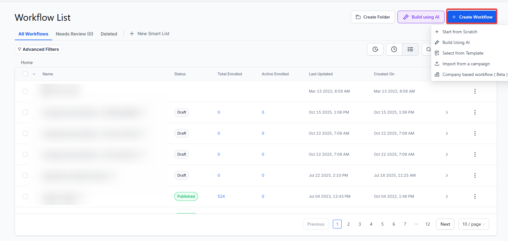 - Navigate to Workflows and create one or edit one you have.