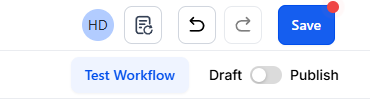 - Turn the toggle on to publish the workflow and save