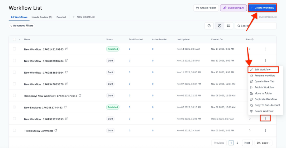 2. Create a New WorkflowClick on “Create New Workflow” or edit an existing one.