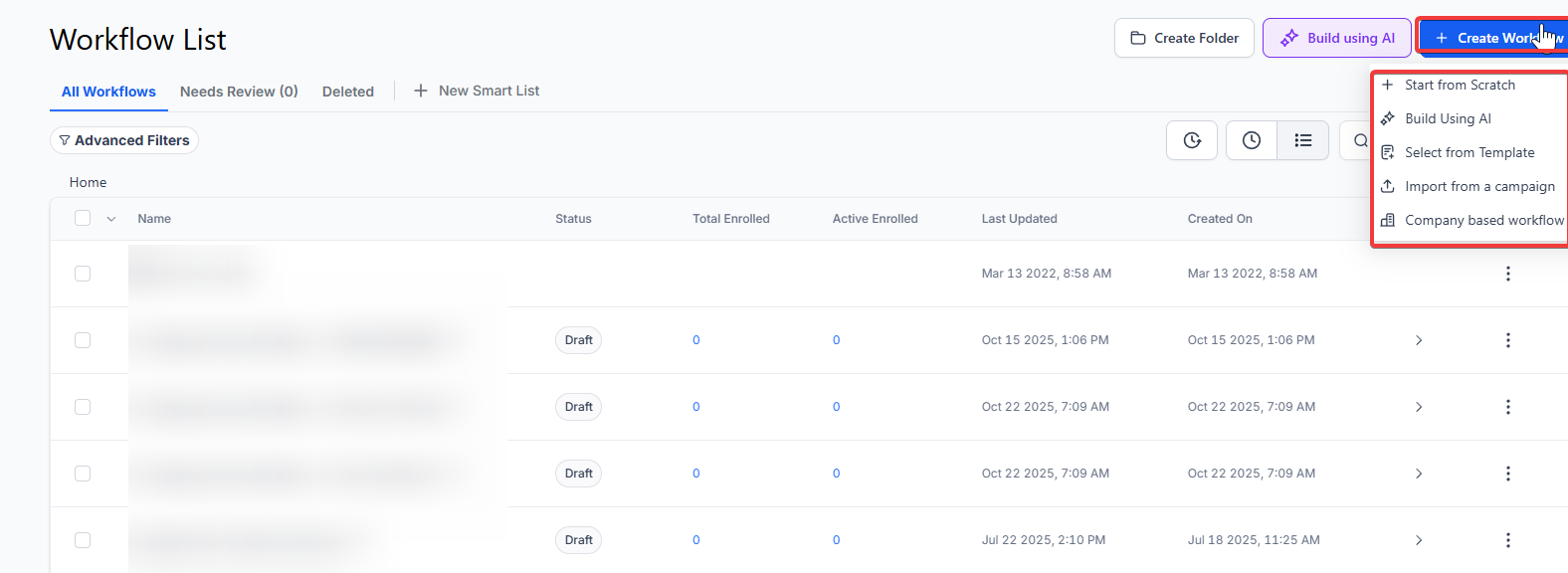 Inside the Workflow Builder, you can have one or multiple triggers to fire off a series of actions.