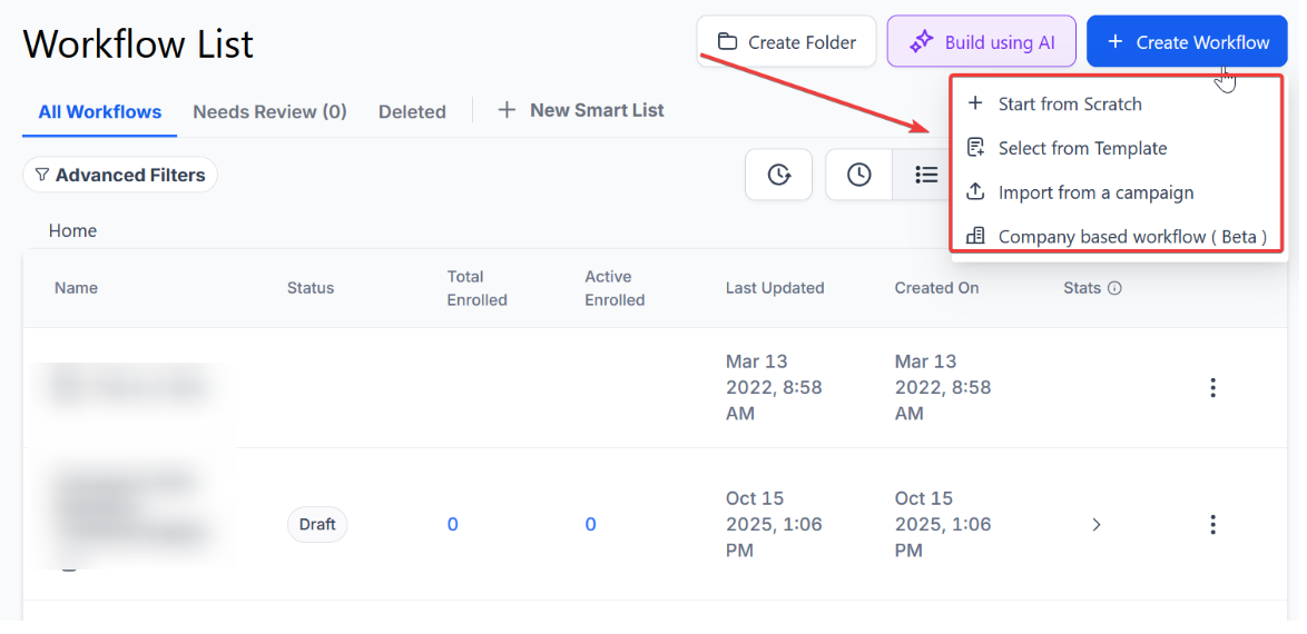 - Navigate to Automation in the left menubar, then to the Workflows section of . This is where you can create, edit, or manage automated workflows. Click on + Create Workflow > Start from Scratch