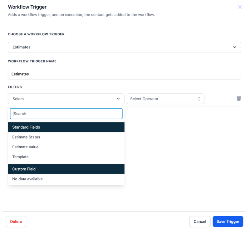 Section titled “How to Use Estimate Triggers and Actions”Follow these steps to set up an automated workflow for estimates: