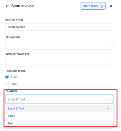 - Customizable Invoice Delivery Channels: Users can also choose to send invoices via email, text, or both, offering greater flexibility in communication with clients.