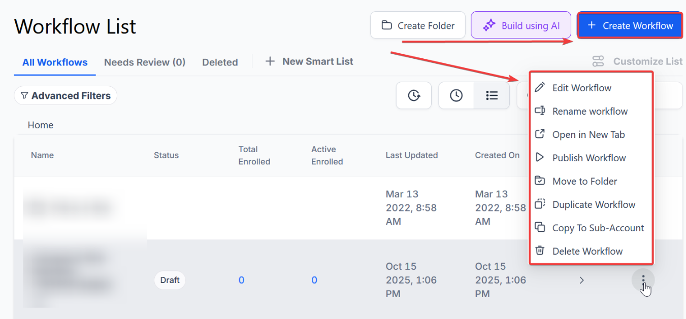 Section titled “Step 1: Create The Workflow Trigger”- Navigate to Automation > Workflows and click + Create Workflow