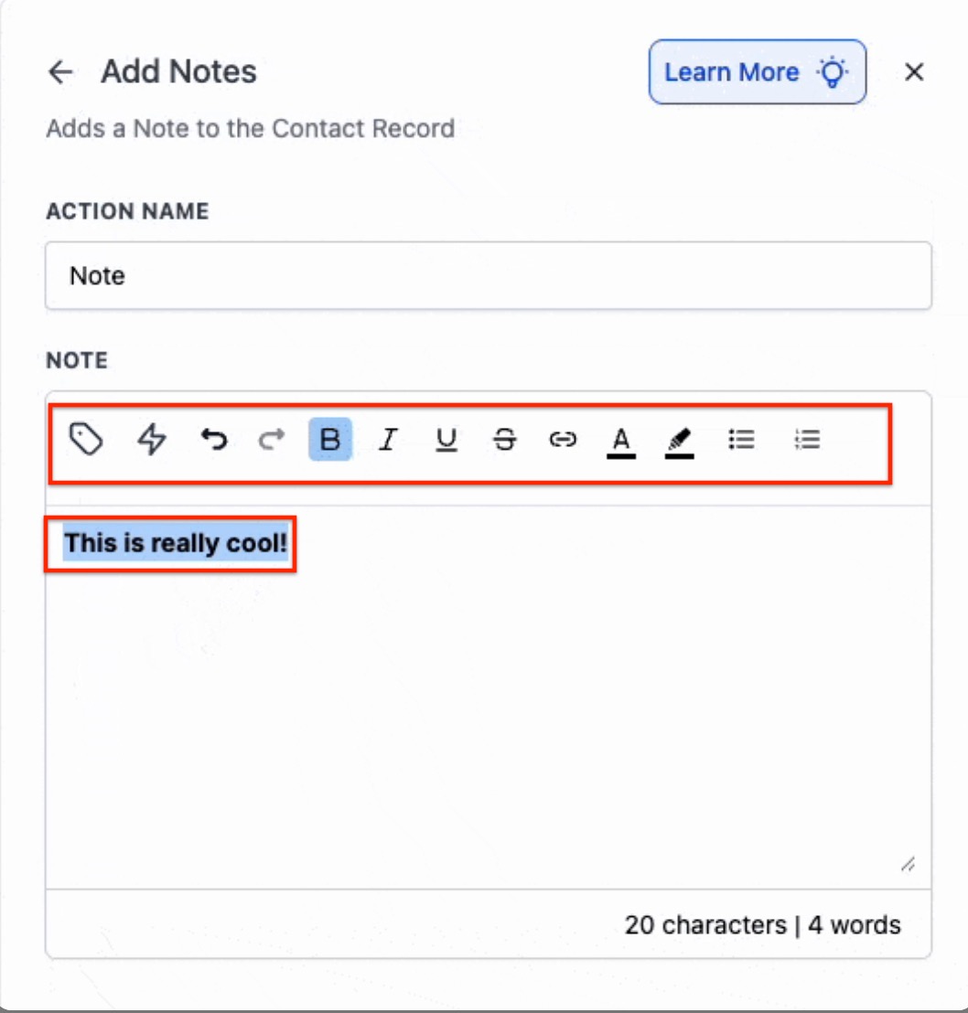 Add rich-text formatted notes within workflows to enhance collaboration and clarity. all centralized in an easy-to-navigate sidebar for efficient team communication and management.