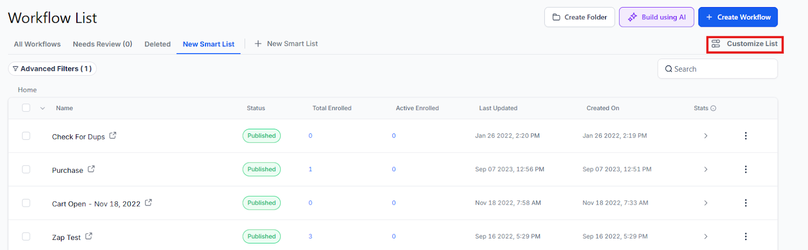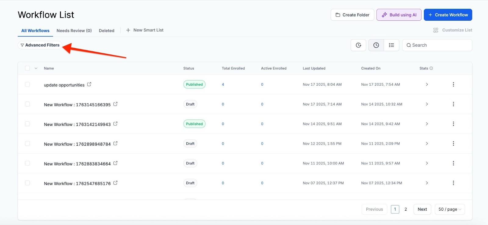 - Streamlined Workflow Management: With Advanced Filters and Smart Lists, you can quickly narrow down workflows based on specific criteria such as triggers, actions, and tags. This eliminates the need for manual searching and helps you locate workflows in a matter of seconds.