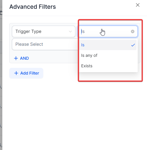 2. Opening Advanced Filters: Look for the Advanced Filters button at the top-right of the workflow page. Clicking this will open a panel on the side where you can start applying specific conditions.